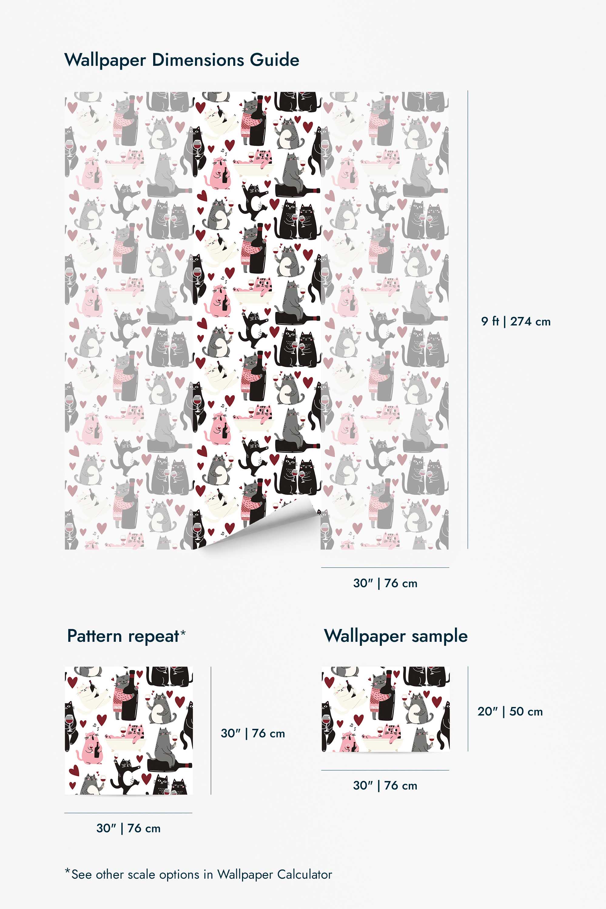 Cats Loving Wine wallpaper adds a playful twist to your space with its novelty style, soft gray tones, and charming cat-and-wine design—perfect for kitchens, home bars, or cozy reading corners. The Cats Loving Wine peel and stick wallpaper features removable and self-adhesive qualities, making it a fun and mess-free update for renters or design lovers who like to change things up. This lighthearted pattern is full of cozy energy, with hearts and wine glasses that make Cats Loving Wine irresistible for animal lovers. Printed on eco-friendly, PVC-free materials using GreenGuard Certified inks, this wallpaper is a safe, sustainable choice for any indoor setting. Whether you go bold on one wall or cover the whole room, this non-pasted option makes every corner feel cuter and more love-filled.