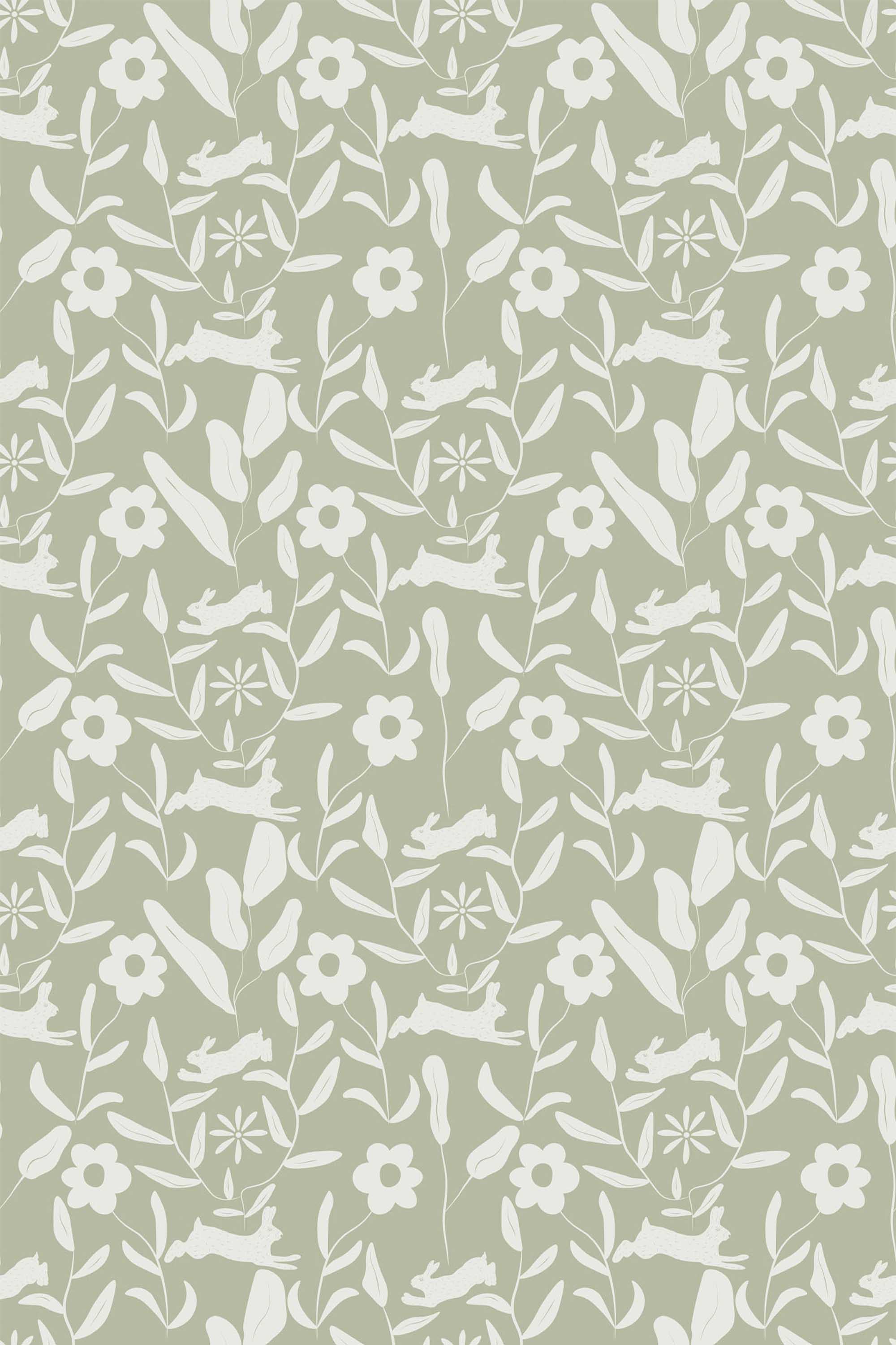 Woodland Rabbit wallpaper brings neutral charm to a nursery, bedroom, or reading nook with soft sage green tones and delicate floral details. Light woodland rabbits rest among gentle foliage, creating a calm and comforting nature inspired pattern. The Woodland Rabbit peel and stick wallpaper offers a removable and self-adhesive solution for simple decorating, and it is also available as non-pasted for a classic paste-the-wall finish. Woodland Rabbit adds warmth and sweetness while keeping the overall look soft and balanced. Printed on eco-friendly, PVC-free materials using GreenGuard Certified inks, this wallpaper is safe for indoor use and ideal for renters or long-term decorating.